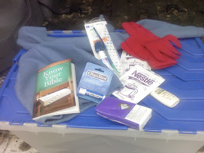 All this, wrapped up in a hat and scarf. People were so happy to receive these thoughtful gifts. Many put the hat, scarf and gloves on right away. These took some time to put together and we are so grateful. A little creativity, intentionality and generosity made today a little better for some of our friends.